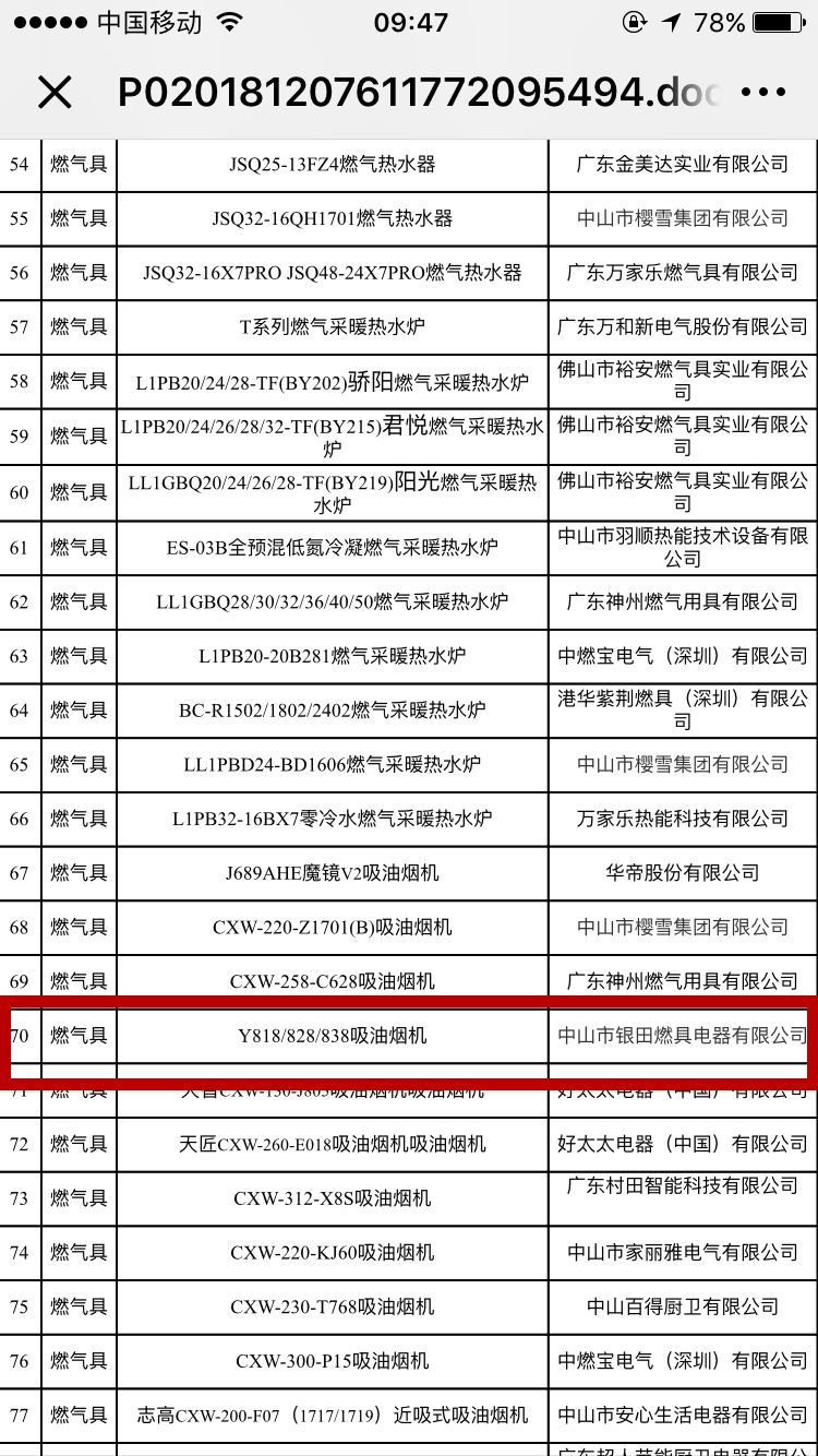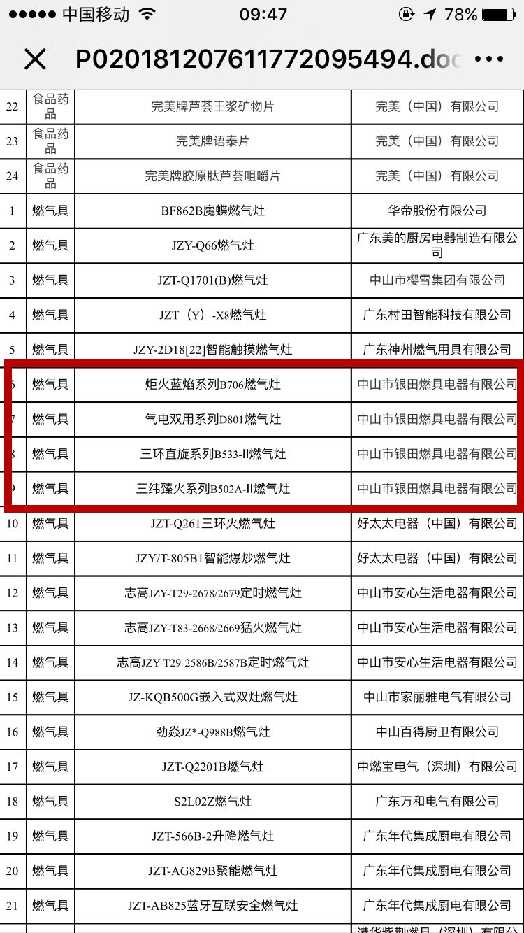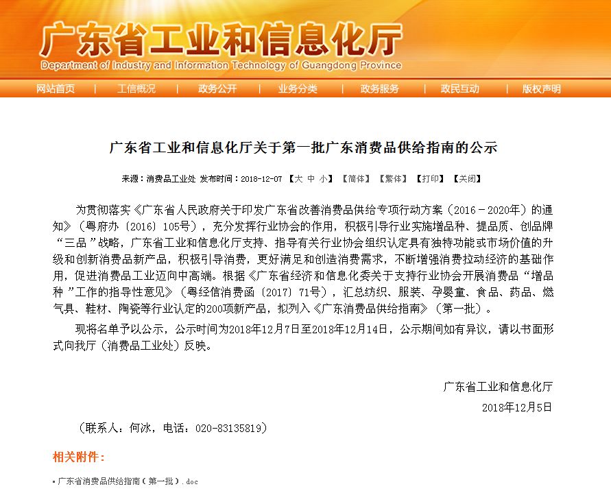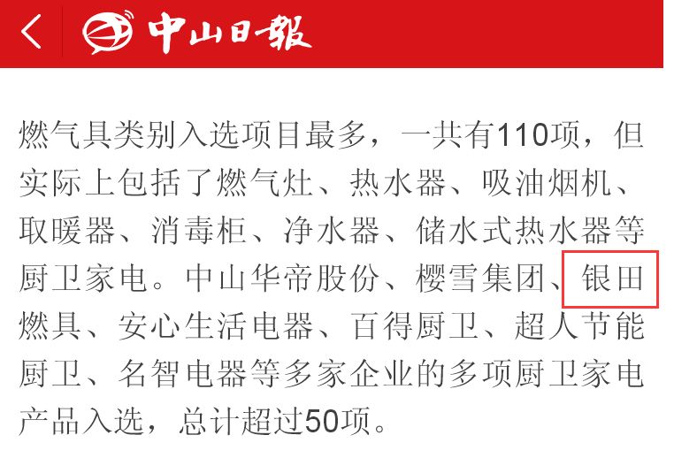 广东省工业和信息化厅在官方网站公示了“关于第一批广东消费品供给指南”。指南中汇总了服装、孕婴童、食品、药品、燃气具、陶瓷等行业认定的200项产品。其中,燃气具行业入选产品110项,中山地区占了50多项,而中山市银田燃具电器有限公司则有7款产品入选